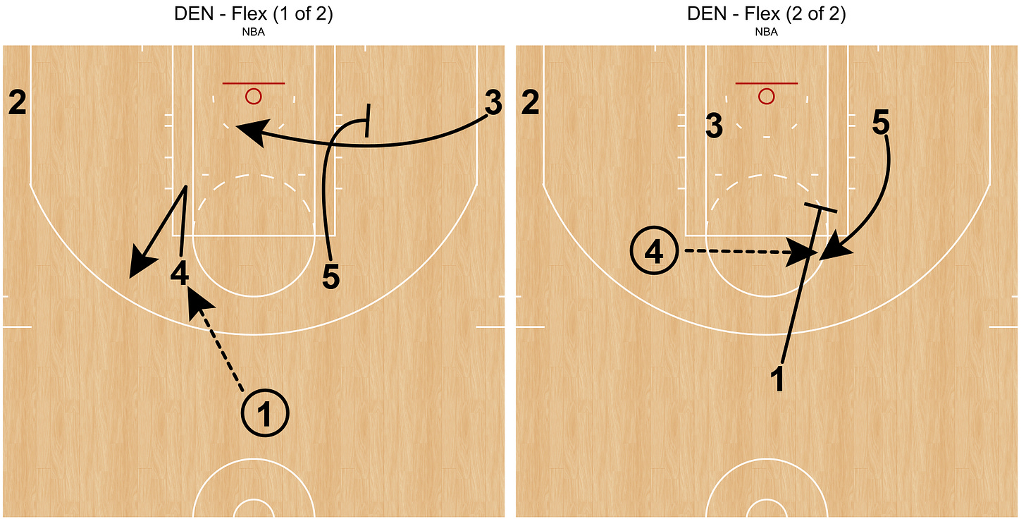 It’s well-documented that I love Flex actions. It’s a small twist on a classic Horns set. This one gets Jokic to the elbow to hit that 15’-17’ jumper.