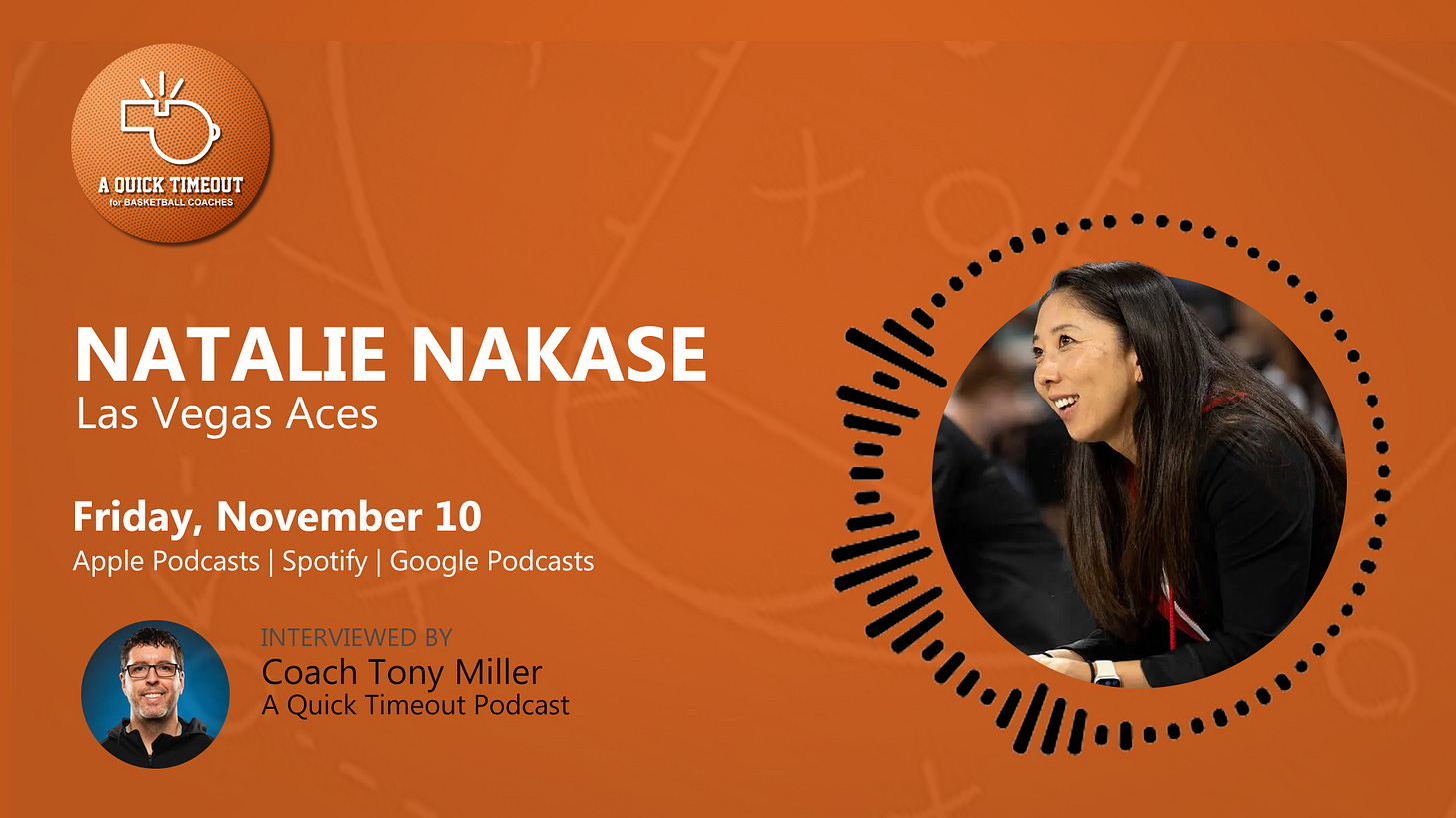 This week on A Quick Timeout podcast, two-time WNBA Championship coach, Natalie Nakase discusses team culture, pace and space offense, her first head coaching experience, and more!